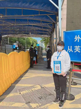 ▲党员同志志愿冲锋在学校防疫“第一关”