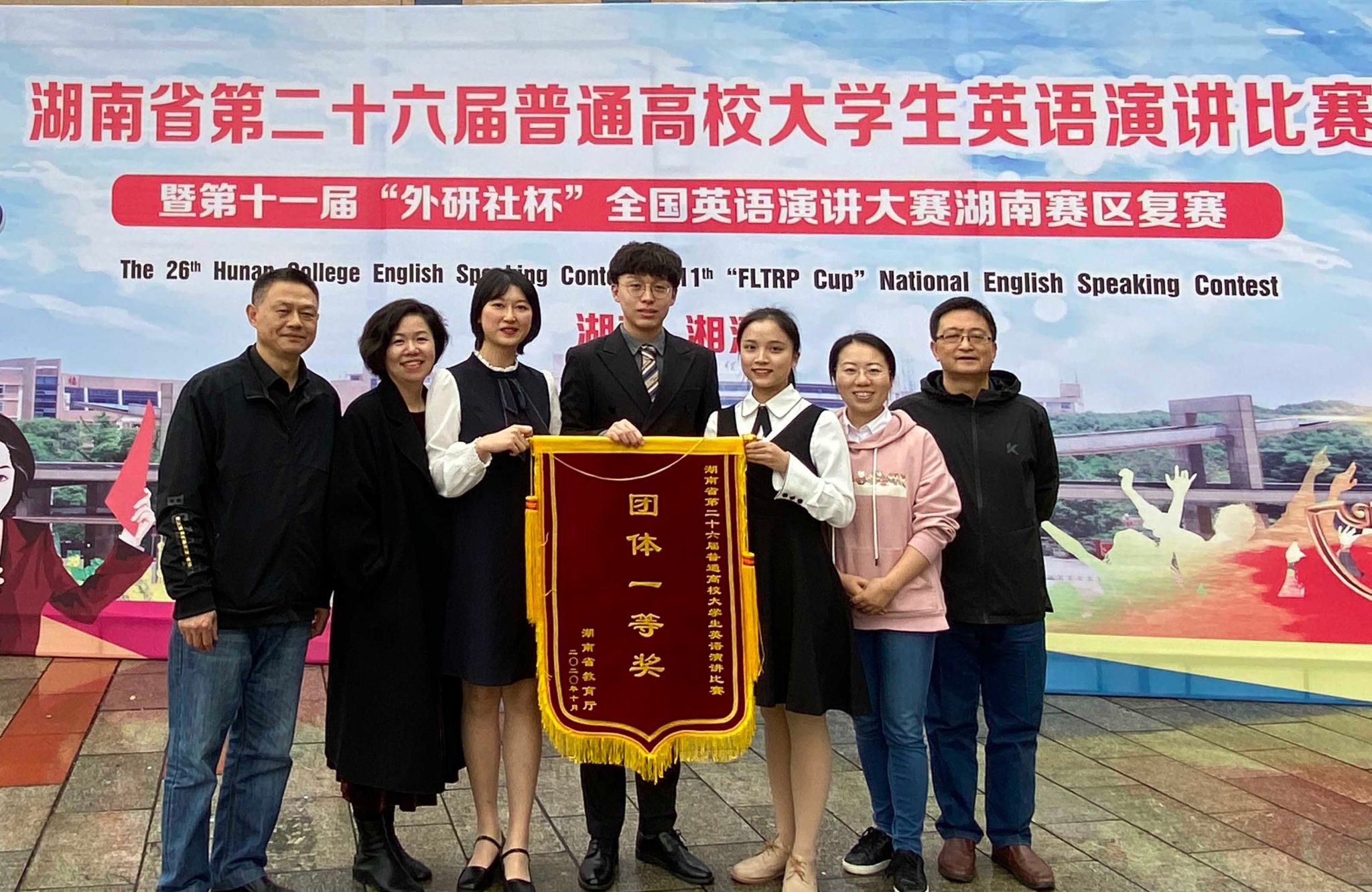 我校派出2018级三名选手参加比赛,由外国语学院副院长李端阳担任领队,王琼、朱敏任指导老师。在本次比赛中,我校代表队在与中南大学、湖南大学、湖南师范大学等51个代表队的激烈角逐中脱颖而出,荣获团体一等奖。其中,外国语学院叶芃萱同学获得专业组个人一等奖;班戈学院向沛萱同学以第二组第一名的成绩获得非专业组个人一等奖;班戈学院的赵子琦同学获得非专业组个人二等奖。