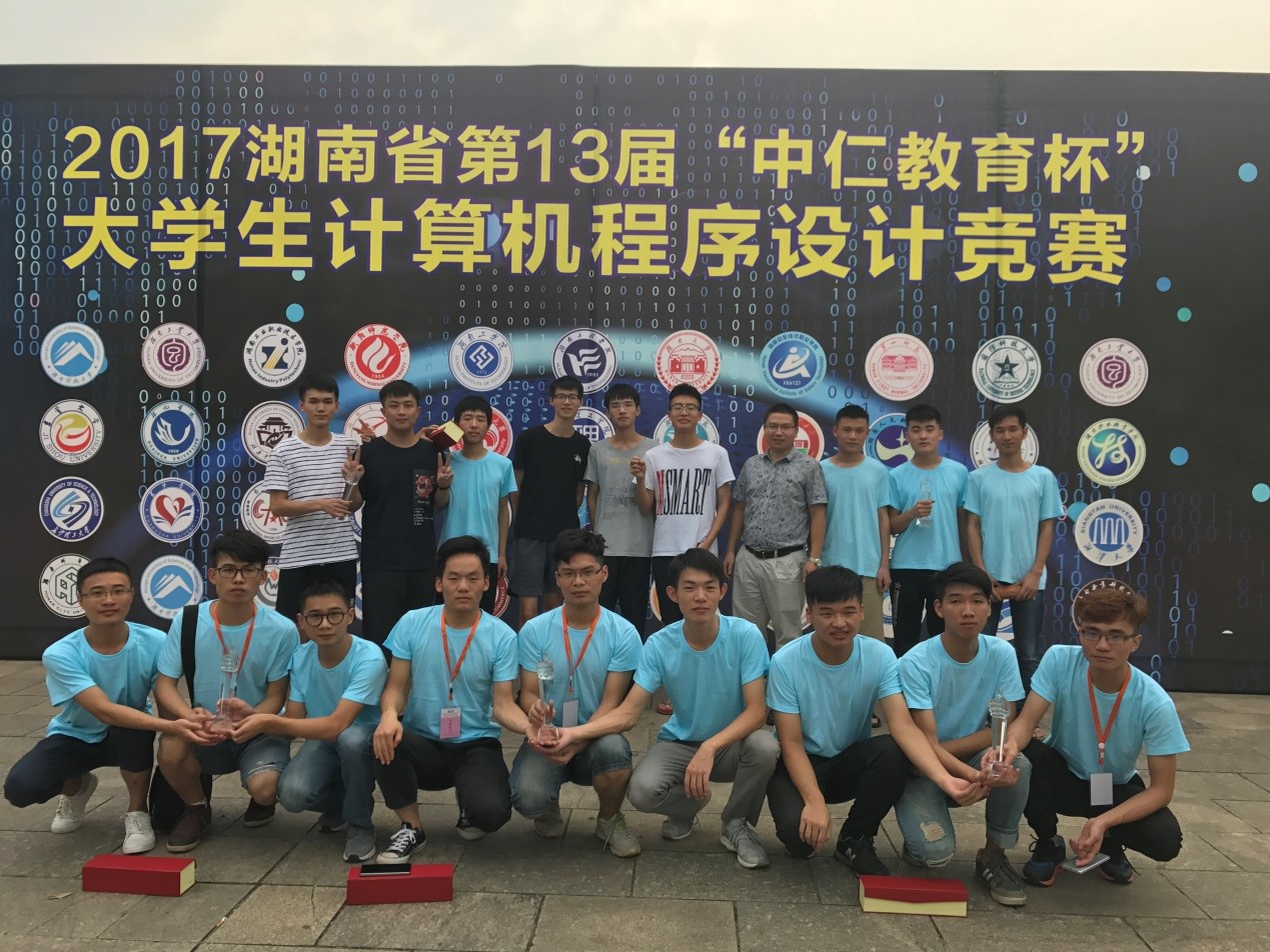 2017年9月1至2日,由湖南省教育厅主办,湖南省高教学会计算机教育专业委员会协办的湖南省第十三届“中仁教育杯”大学生计算机程序设计竞赛在我校举行。共有包括国防科技大学、中南大学、湖南大学在内的全省42所高等院校的185支代表队和2支著名中学长郡中学、长沙市一中高水平特邀代表队参赛(程序设计类 133 支队,应用开发类34支队,机器人类高尔夫球赛队20支),是该赛事历史中参赛队伍最多、规模最大的一次。