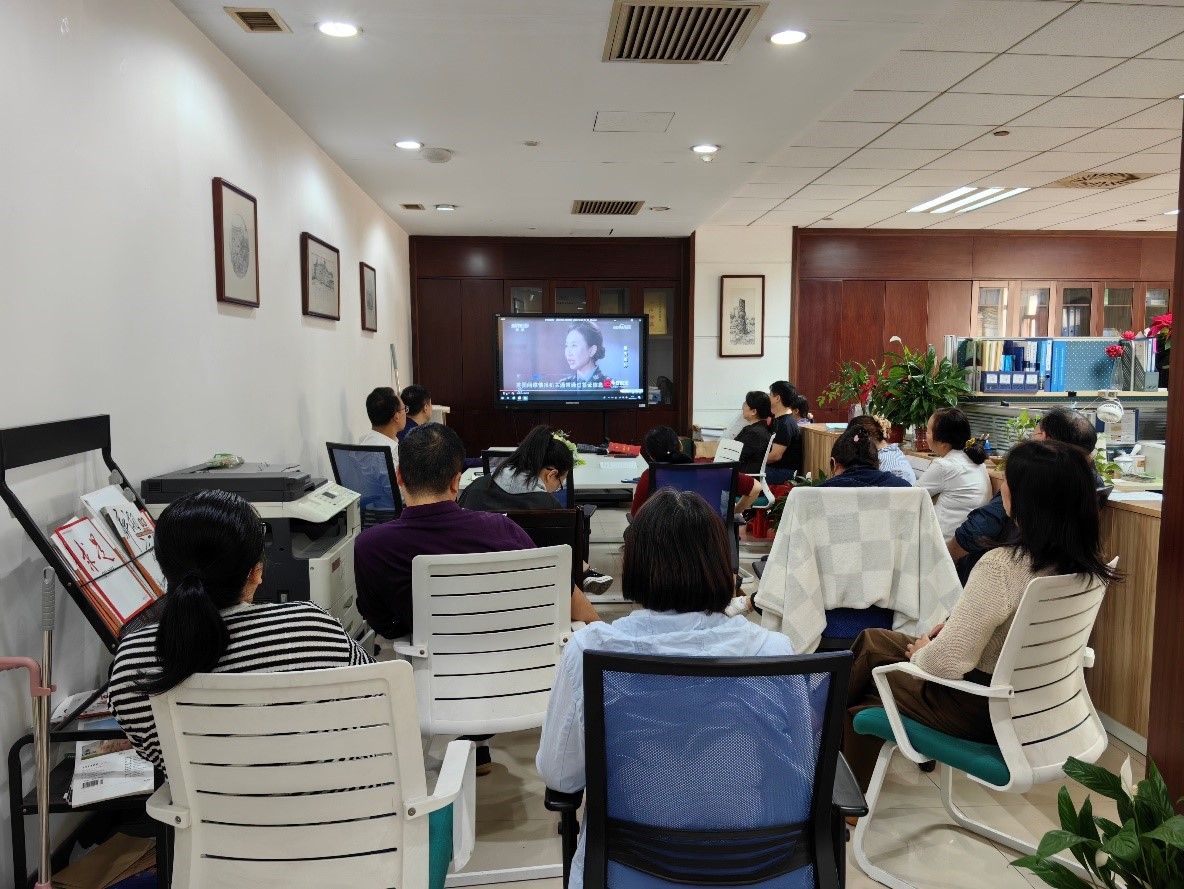 ▲支部党员集中观看警示教育片