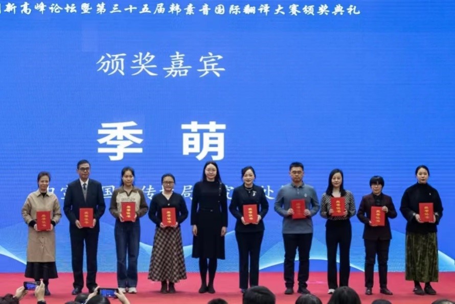11月25日,新时代对外话语创新高峰论坛暨第三十五届韩素音国际翻译大赛颁奖典礼在中国外文局举行。我校荣获俄译汉二等奖1项(指导教师为王润华、杨晴)、俄译汉优秀奖2项(指导教师为王润华、杨晴)、朝译汉优秀奖2项(指导教师为樊强)、日译汉优秀奖1项(指导教师为王荣)、英译汉优秀奖1项,学校荣获“最佳组织奖”。这是我校继第三十四届大赛成果之后又一骄人战绩。
