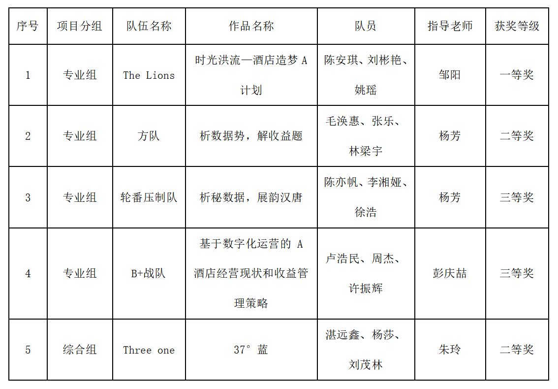 第三届湖南省大学生酒店管理商业策划创意大赛我校获奖名单