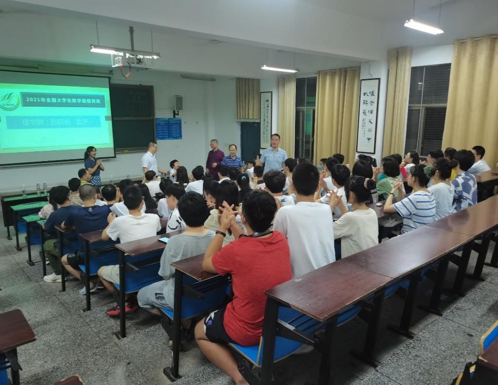 (文/理学院)9月8日晚,理学院在树人楼北112教室举行了2021年全国大学生数学建模竞赛赛前动员大会。教务处副处长张广酃、理学院副院长贺梦冬、谢练武、陈红斌,数学建模指导组老师,以及经过层层选拔来自全校相关学院的27支队伍、共计81名队员参加了本次动员大会。