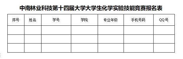 附:《中南林业科技大学第届大学生化学实验技能竞赛报名表》