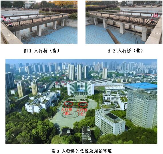 本次大赛主要针对中南林业科技大学东园图书馆前坪喷泉水池上的两座人行桥进行外观造型设计,为该人行桥提质改造深化设计提供参考。现有的人行桥如图1、图2所示,人行桥所处的位置见图3。