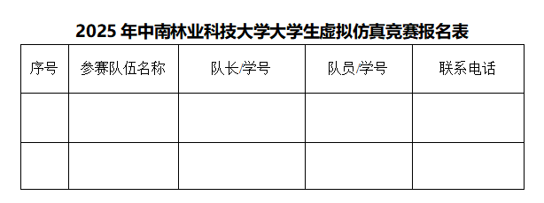 附:《2025年中南林业科技大学大学生虚拟仿真竞赛报名表》