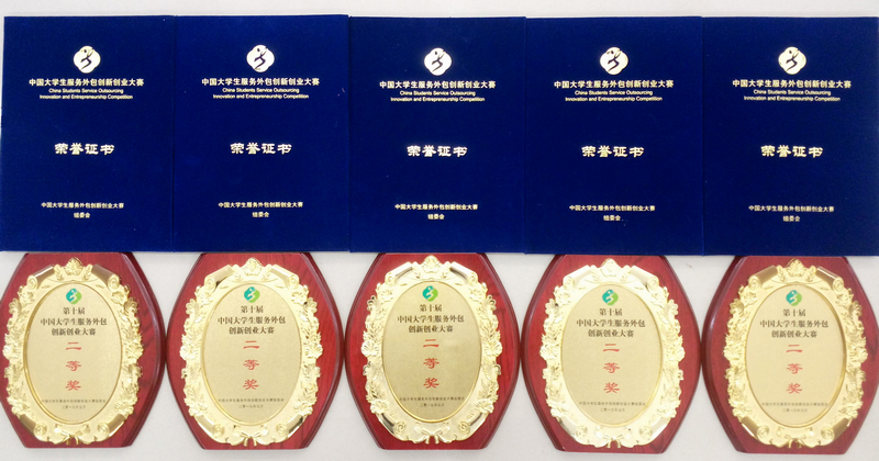 2019年5月24日,由中华人民共和国教育部、中华人民共和国商务部、无锡市人民政府主办,国家服务外包人力资源研究院、无锡市商务局、无锡市教育局和江南大学联合承办的“第十届中国大学生服务外包创新创业大赛”总决赛结果揭晓。我校黄洪旭、周国雄、徐卓农、任嘉四位老师指导的五支团队获得国家二等奖,蒋峰、孙玉荣老师指导的两支团队获得国家三等奖,共斩获七项国奖。我校取得获奖队伍数量湖南省第一,全国第七的优异成绩。